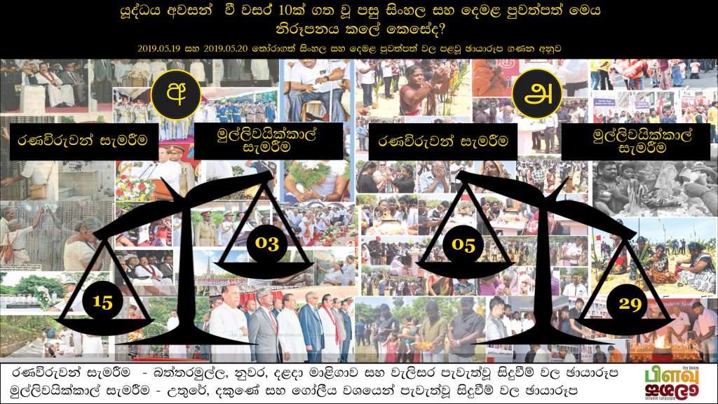 The manner in which Sinhala and Tamil press depicted the commemoration of 10 years after war through images on May 19 and 20.