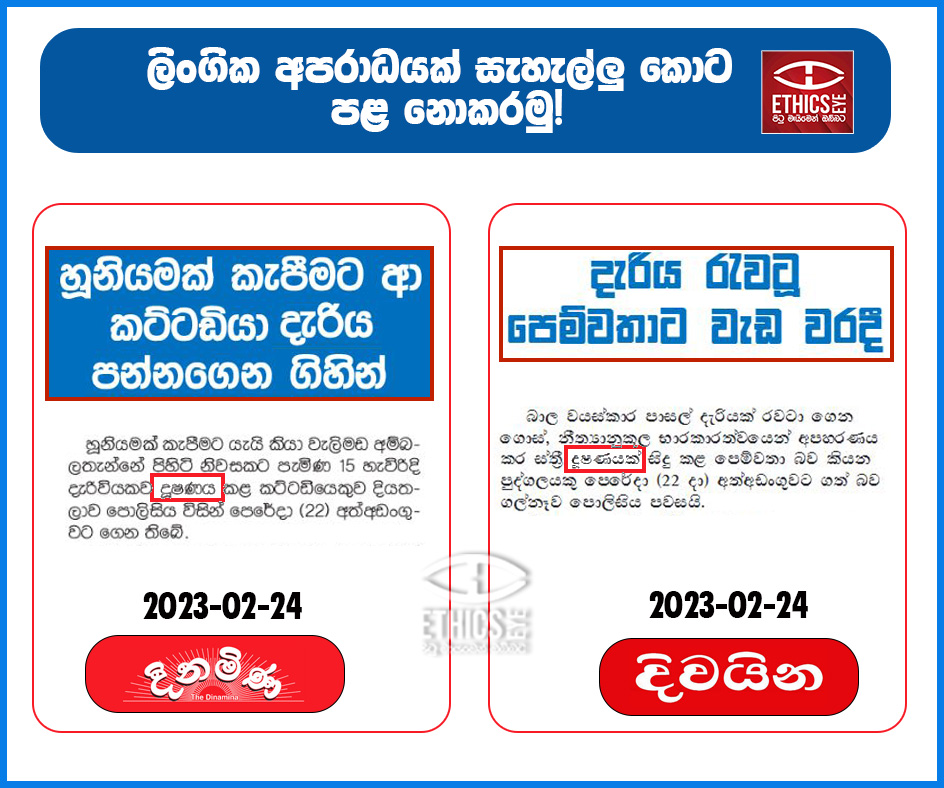 During the months of January and February in 2023, the newspapers, Lankadeepa, Aruna, Dinamina, Mawbima and Divaina published several articles on sex crimes which contained various ethical violations.