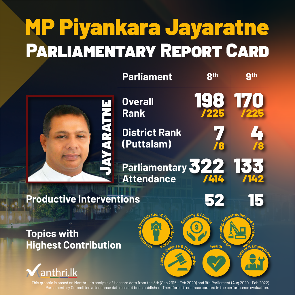 Parliamentary report card: Piyankara Jayaratne – September 2015 to February 2020 and August 2020 to February 2022