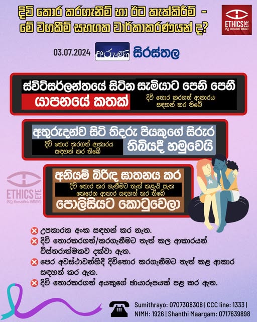 Ethics Eye (Colombo: Verité Research, 2023-08-17)On 13th August 2023, Mawbima newspaper reported on a murder case involving a female suspect, describing her as "Sundari" (සුන්දරී). Such references to physical appearance can contribute to the objectification and stereotyping ... -