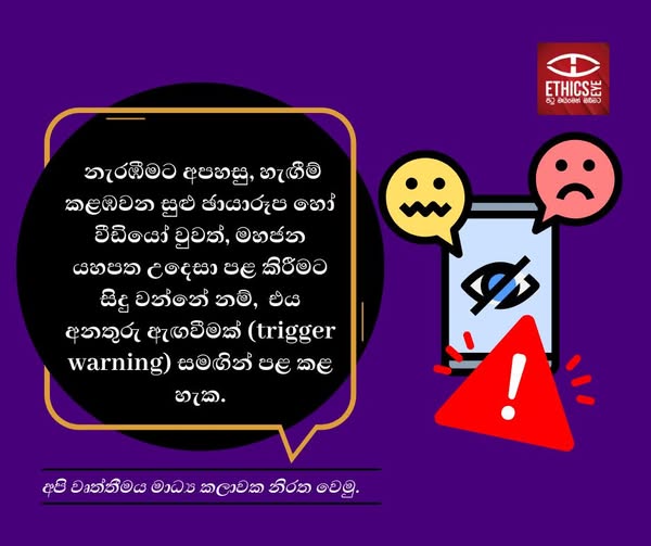 Ethics Eye (Colombo: Verité Research, 2023-02-13)On 12th February 2023 Sunday Lankadeepa published an article which called a homosexual relationship an "asammatha premaya" which is prejudiced and discriminatory towards the LGBTQ+ community.
