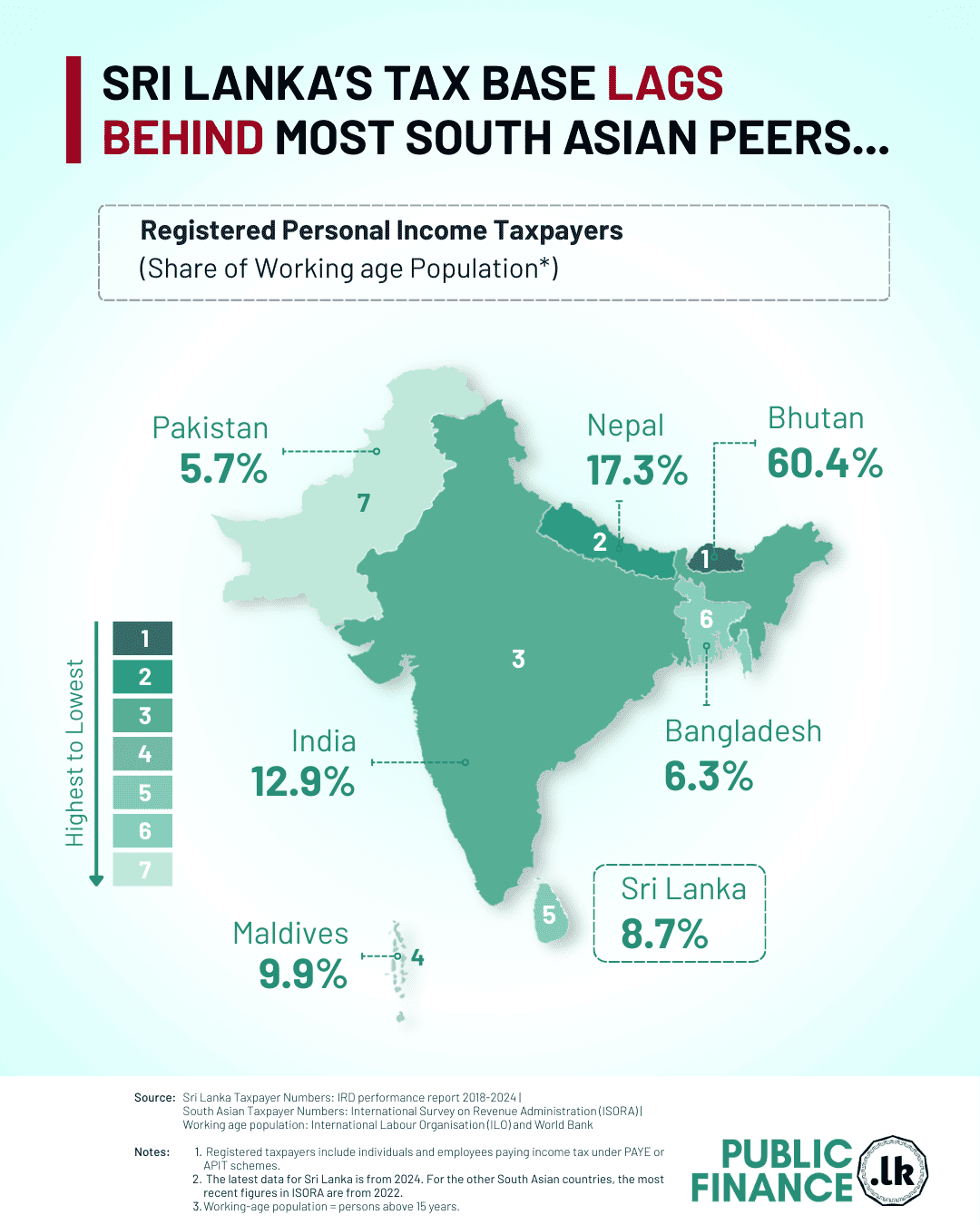 Sri Lanka’s Personal Income Taxpayer Base Lags Behind South Asian Peers Despite Recovery