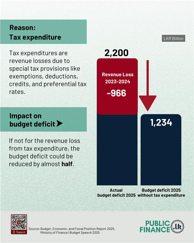 https://www.publicfinance.lk/en/topics/nearly-50-of-the-budget-deficit-due-to-revenue-loss-from-tax-expenditure-1743141975