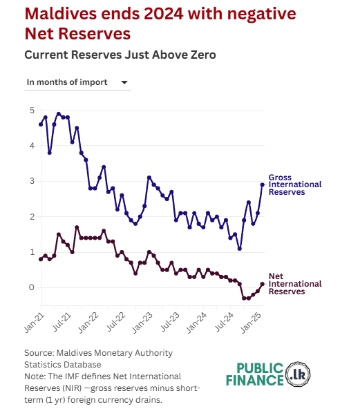 For the first time in its history, the Maldives' net international reserves fell below zero at the end of October 2024. This marks a critical point in the country’s external position and raises concerns about the adequacy of foreign currency liquidity.