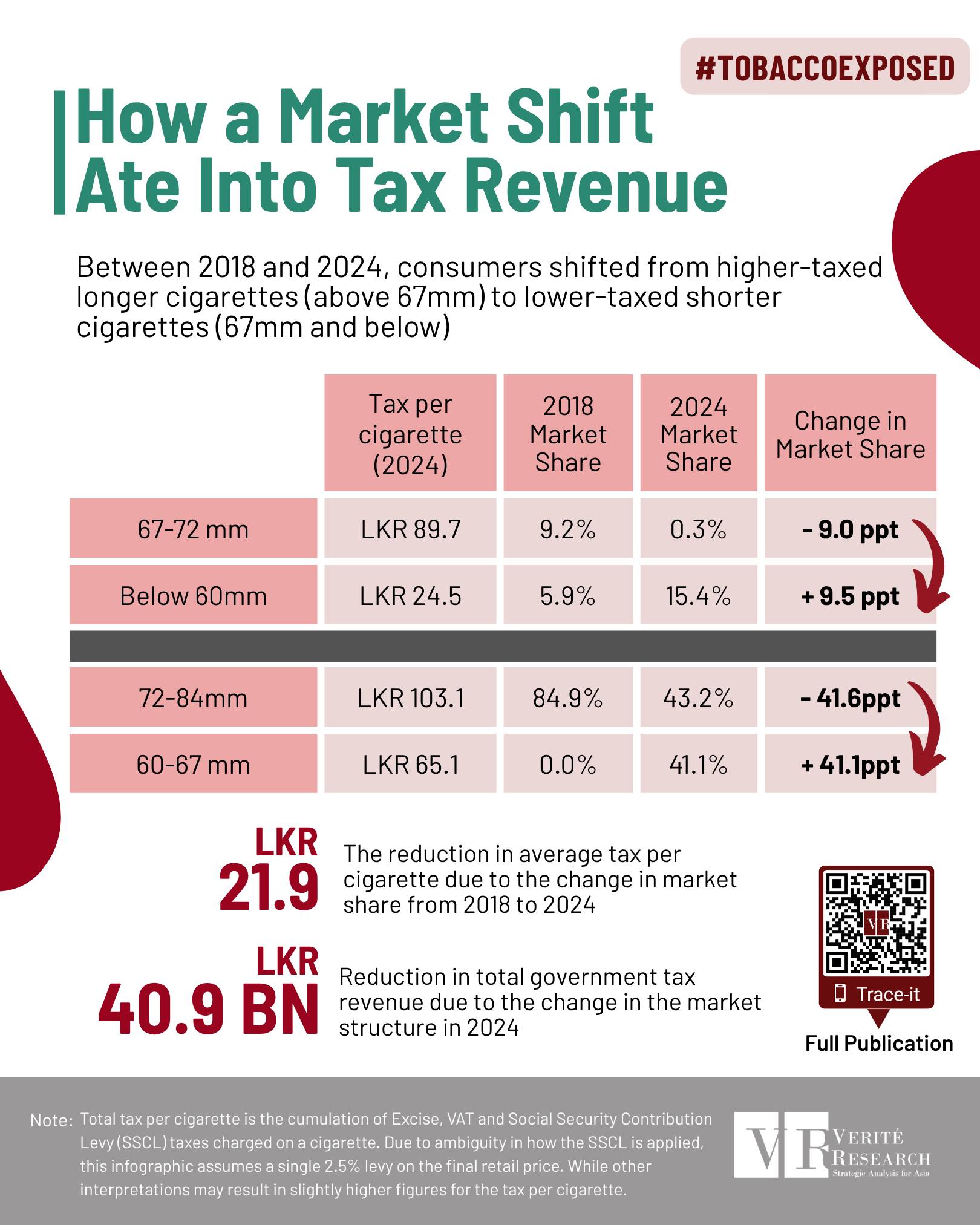 The outcome: the weighted average tax per stick fell by LKR 21.9, leading to a LKR 40.9 billion loss in government revenue for the sticks sold in 2024.